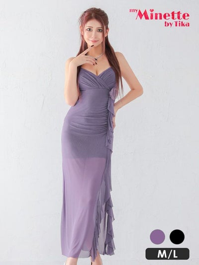 5. [SALE]ロングドレス プチプラ 派手 タイト キャミソール シアー シースルー 谷間 背中魅せ ブローチ 黒 キャバドレス (みのり着用/M~L対応) |myMinette/マイミネット