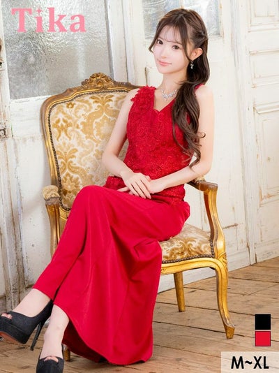 360度色気が増す♪ [アウトレット] タイト ロングドレス シンプル レース 大人 ノースリーブ ストレッチ フラワー刺繍 シアー キャバドレス (聖菜着用) [Tika/ティカ]