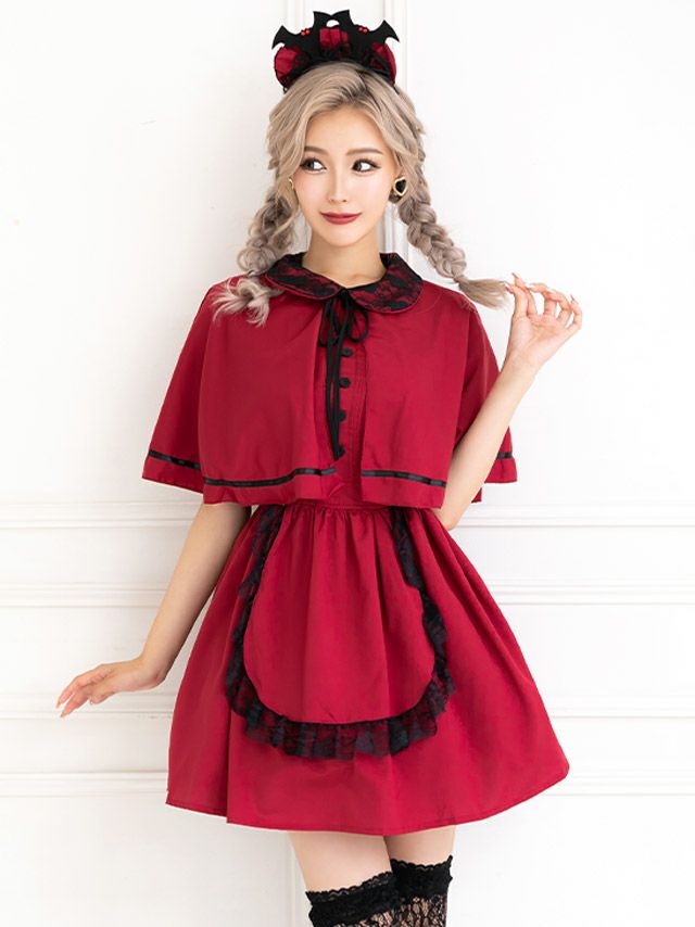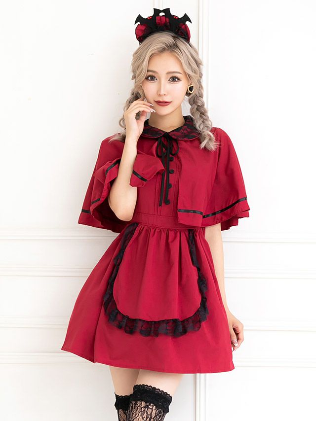 洋館メイドでミニ丈あんまり見たことなかったんですけど、ミニめっちゃ可愛い! ワインレッドも珍しい気がする!!