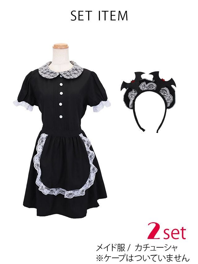 [セール]コスプレ 襟付きレースフレアプチプラガーリーメイド [2点セット] (メイド服/カチューシャ)