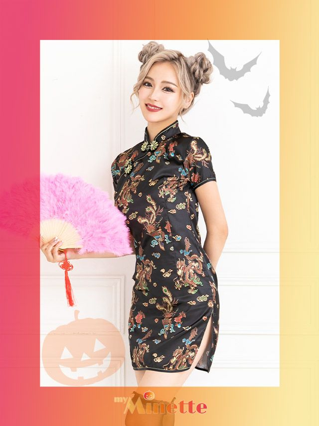 [ハロウィン] 2種柄サイドスリットタイトミニチャイナドレス [コスプレ1点セット] (チャイナ服)