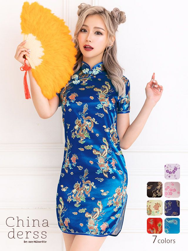 2種柄 サイドスリット タイ トミニ チャイナドレス