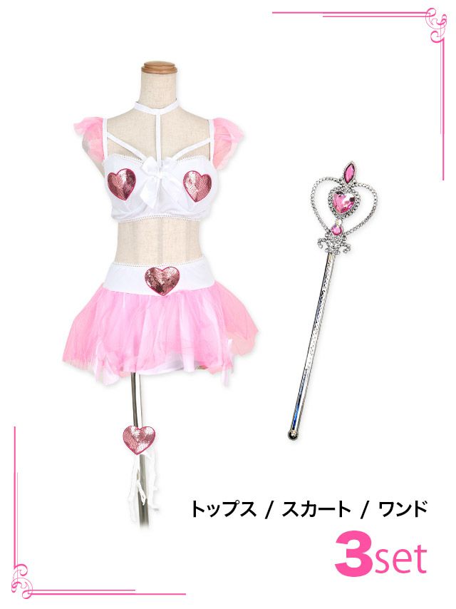 4. コスプレ ラブリーセクシー個性エロかわツインガーリーへそ出しフレアスカートエンジェル [3点セット] (トップス/スカート/ワンド)