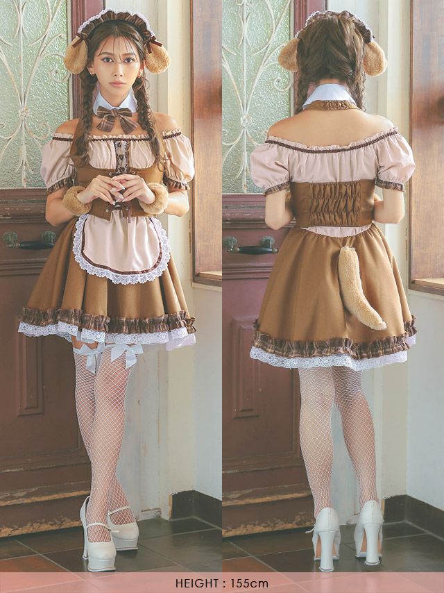 コスプレ 体型カバーフレアスカートガーリーメイド犬アニマルのディティール