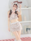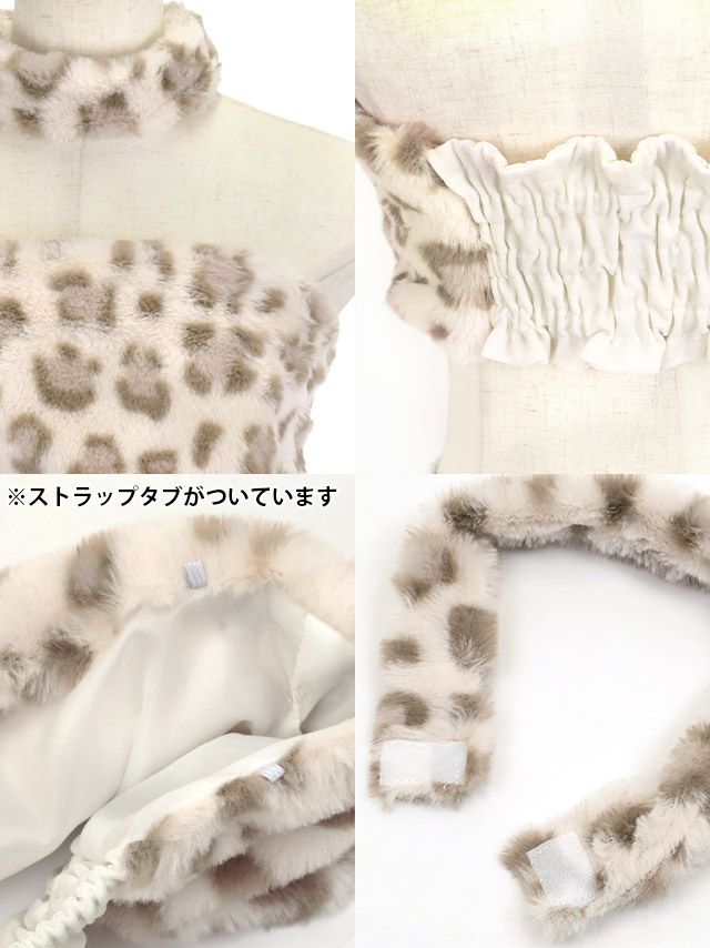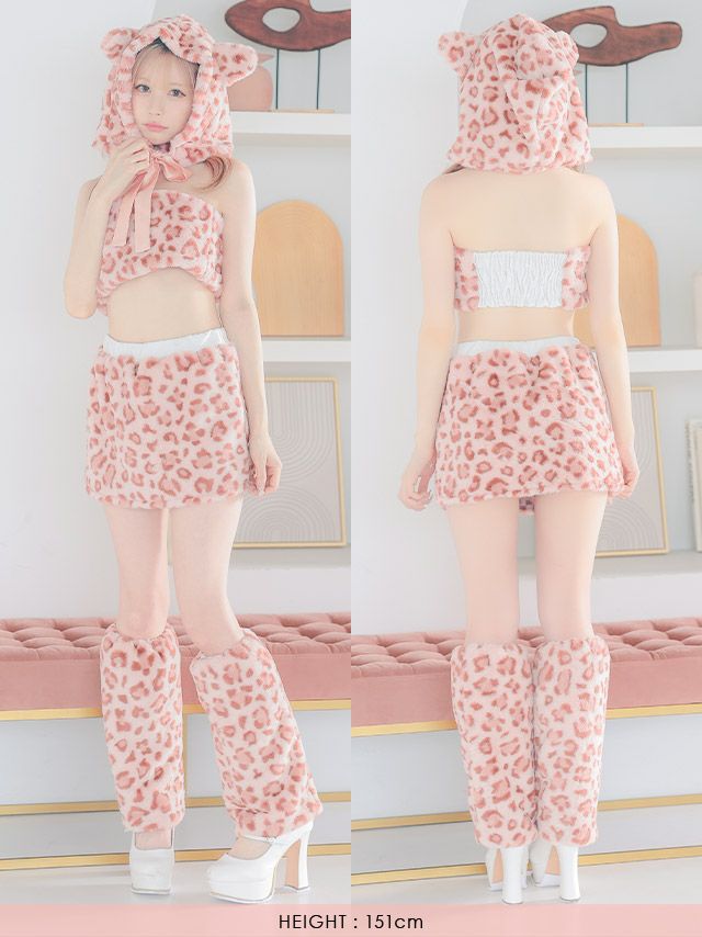 4. [セール]コスプレ もこもこレオパードへそ出しチューブトップ×タイトスカートセットアップセクシーペア猫アニマル [3点セット] (トップス/スカート/フード/レッグカバー)(S~L)