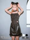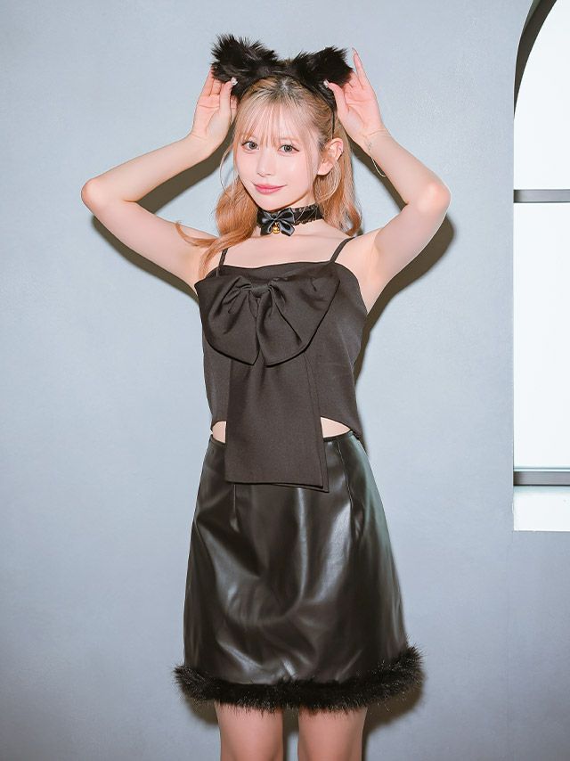 コスプレ ビッグリボンキャミソールへそ出しレザーファータイトスカートセットアップ猫アニマルのフロントバック