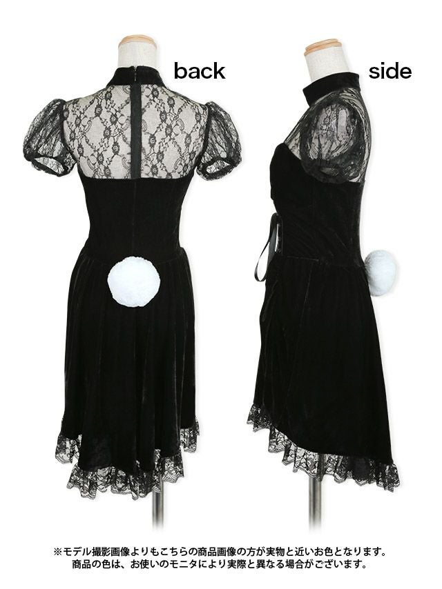 5. コスプレ ガーリー黒猫レースアップ体型カバーフレアスカートセクシーアニマル [2点セット] (ワンピース/カチューシャ)