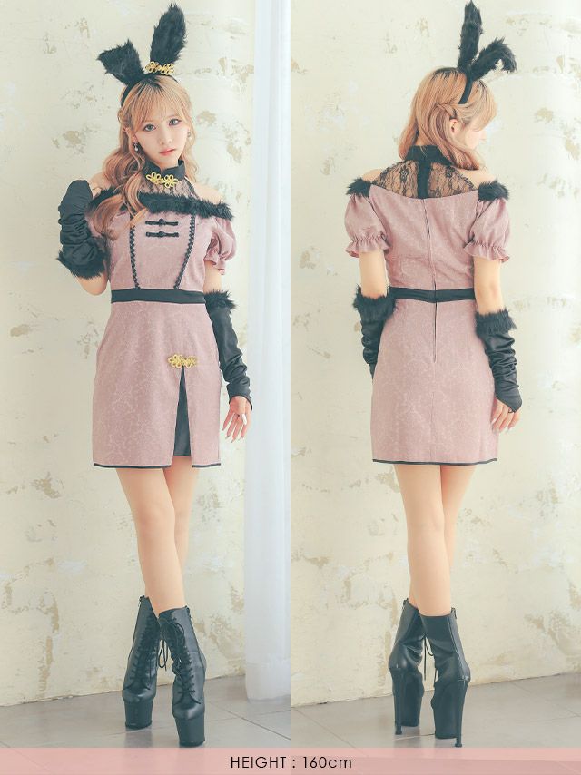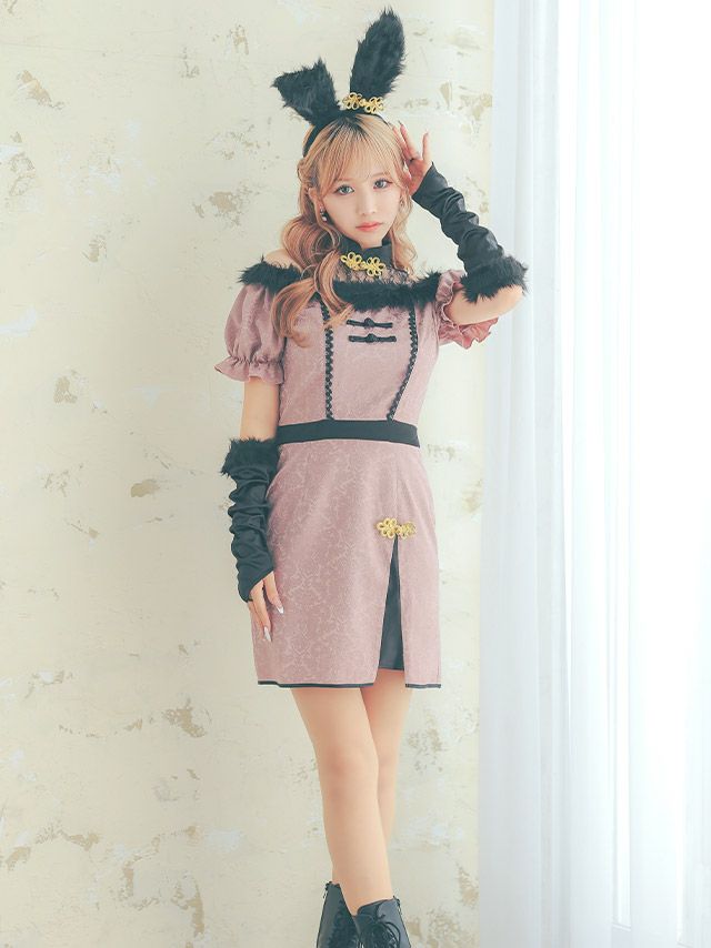仮装 変装 コスチューム うさぎ 中華服 中華娘 myMinette マイミネット コスプレ カットアウト ショルダー タイト ガーリー レトロ チャイナ バニー