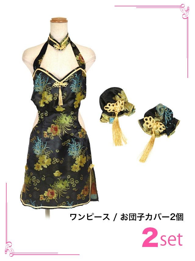コスプレ ホルターネックくびれサイドカットセクシータイトペアミニチャイナドレス[2点セット] (ワンピース/お団子カバー)