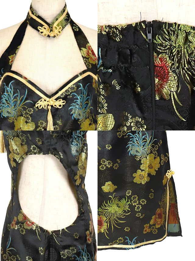 ホルターネックくびれサイドカットタイトペアミニチャイナドレス