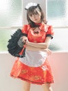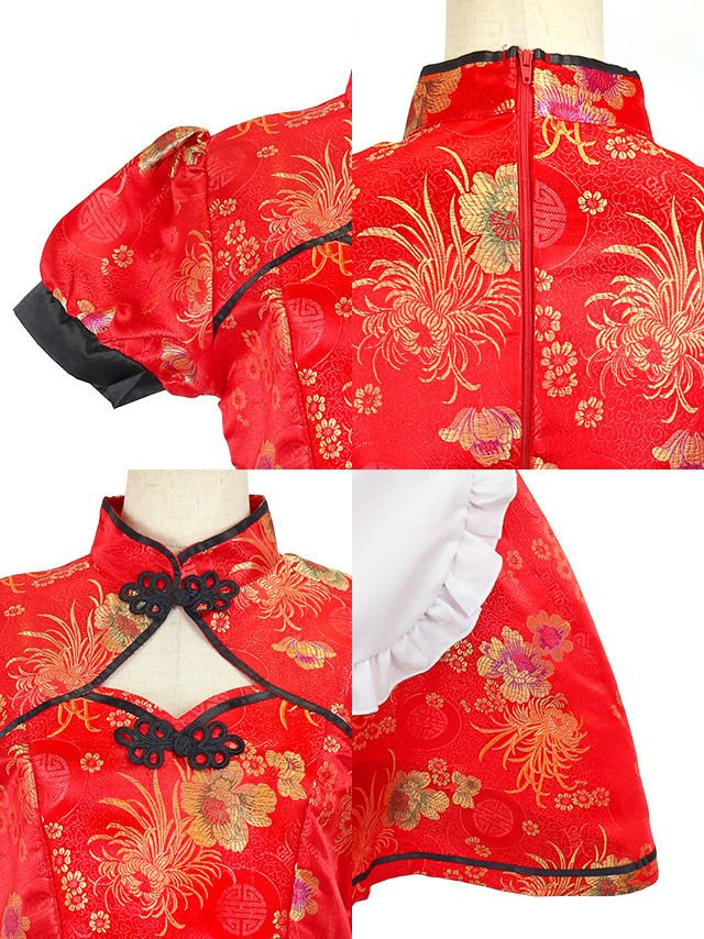 4. コスプレ セクシーバストカットフレアスカートペアメイドチャイナドレス[3点セット] (ワンピース/エプロン/カチューシャ)