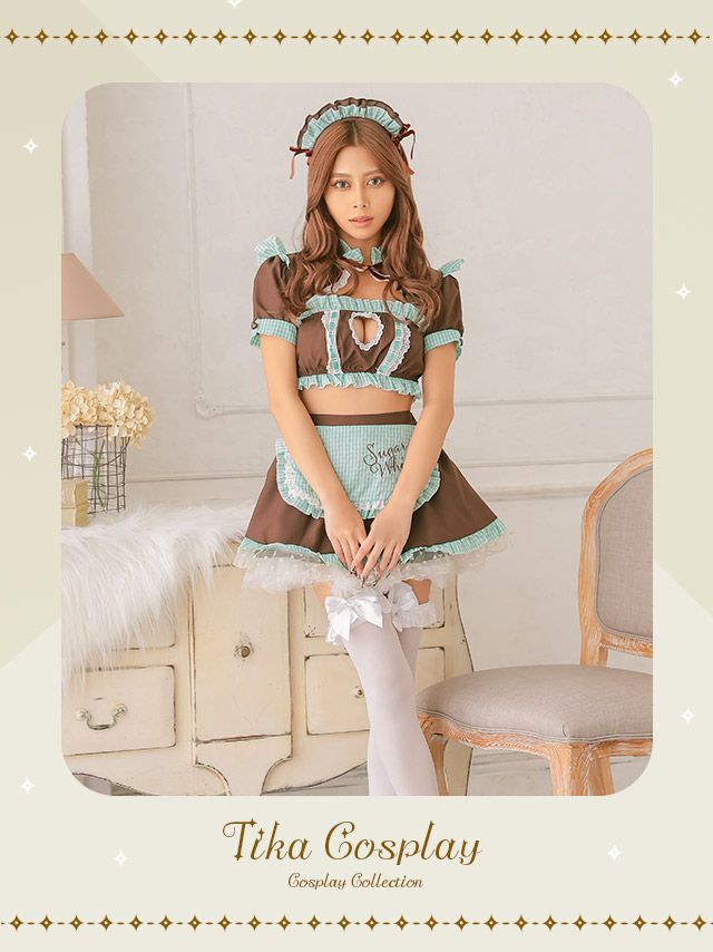 ハートバストカットチェックフリルレースフレアスカートへそ出しラブリーセクシーガーリーメイド
