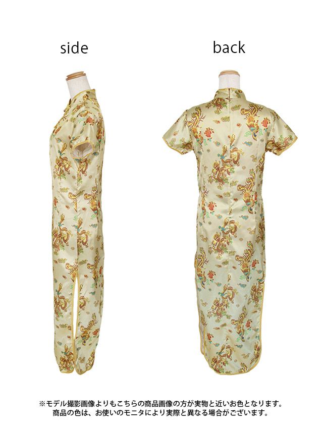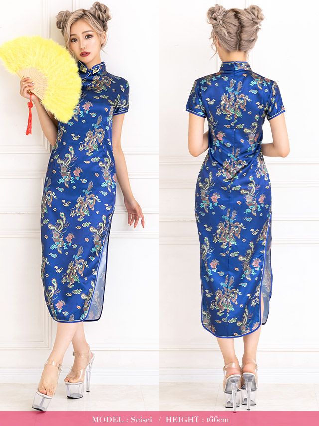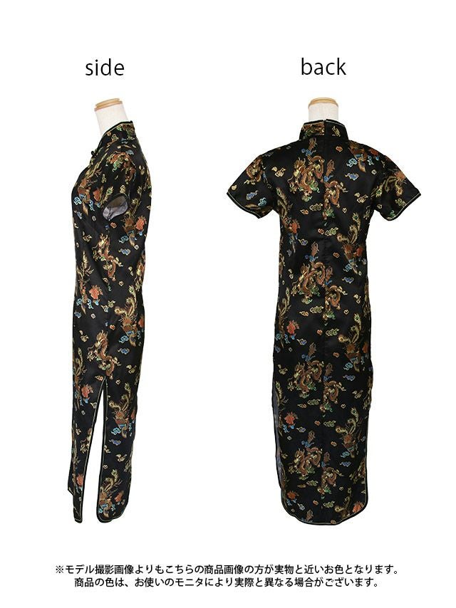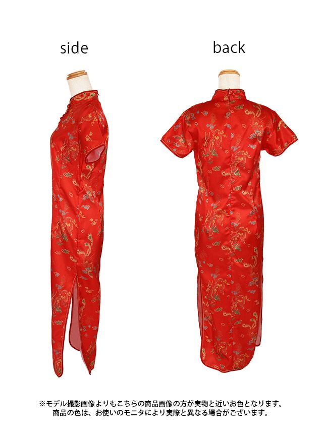 コスプレ タイトプチプラセクシーサイドスリットロング丈チャイナドレスのフロントバック