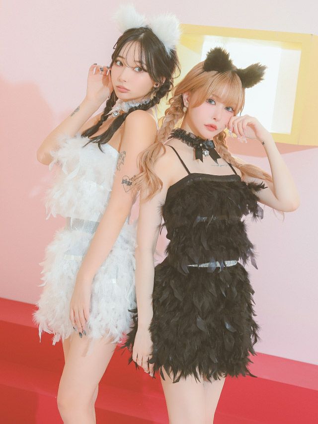 コスプレ へそ出しセクシーペアふんわり羽付きセットアップ猫アニマルのカラー
