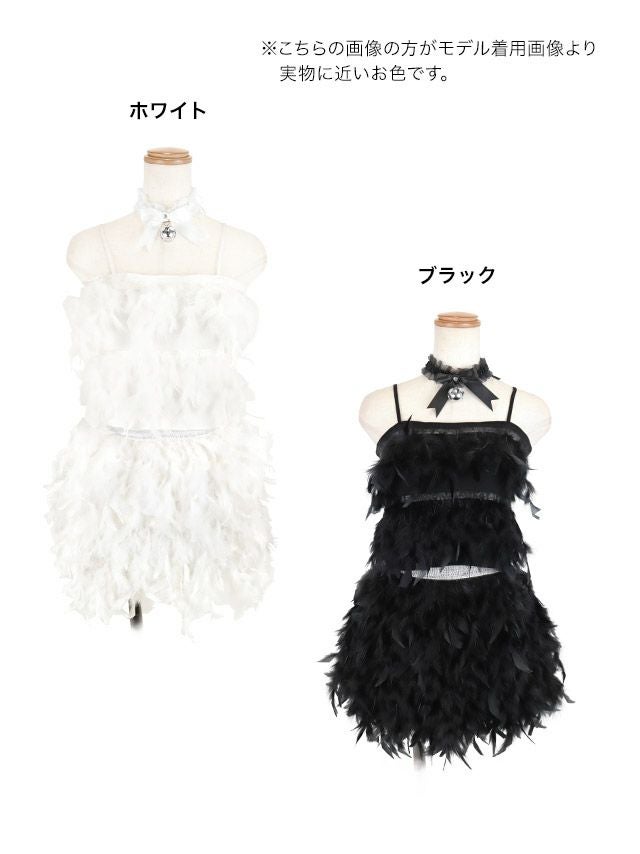 4. コスプレ フェイクフェザーへそ出しセットアップガーリー猫アニマル [4点セット] (トップス/スカート/チョーカー/カチューシャ)