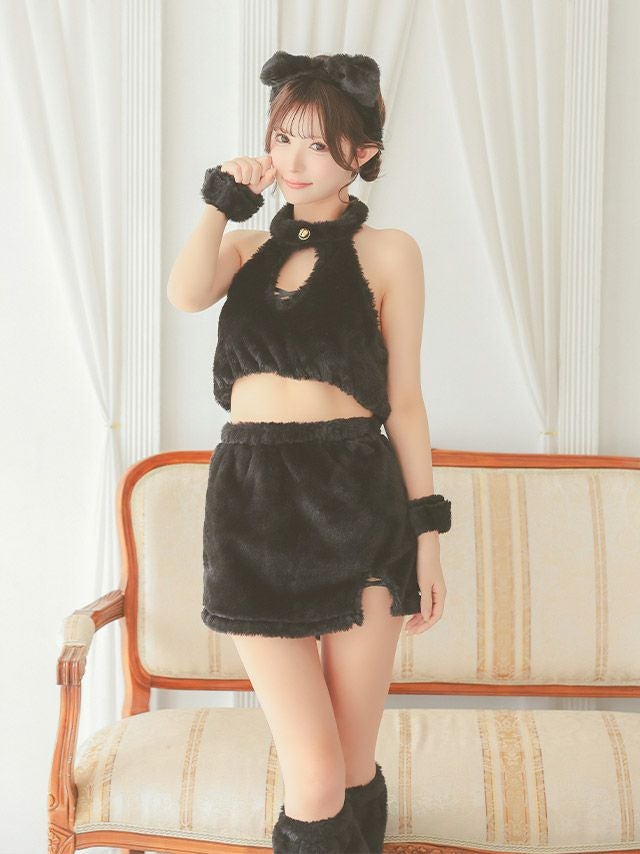 5. [セール]コスプレ ふわもこ フェイクファー セクシー へそ出し アニマル [5点セット] (トップス/スカート/カチューシャ/リストバンド/レッグウォーマー)