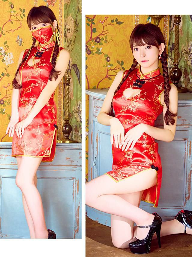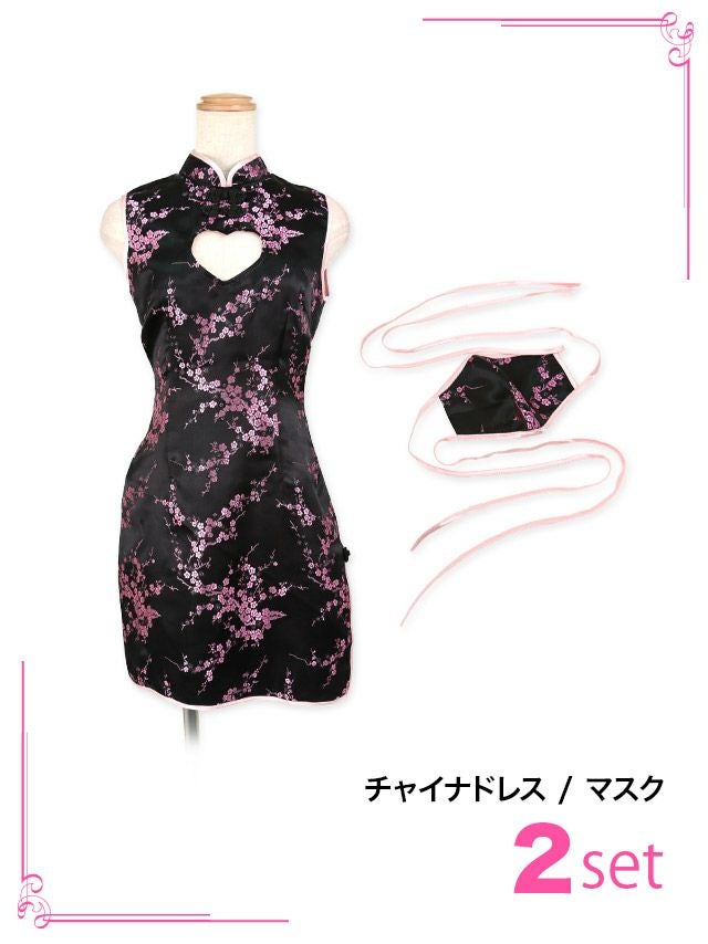 4. コスプレ ハート型バストカットサイドスリットセクシータイトミニペアチャイナドレス[2点セット] (チャイナドレス/マスク)(S~L)