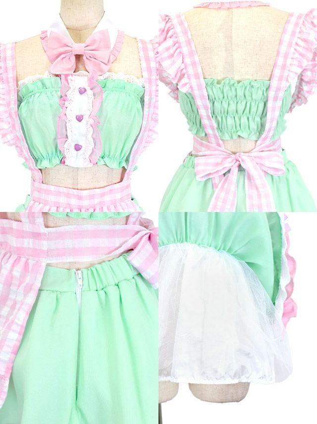 ランジェリー風ギンガムチェックフリルセクシーメイド