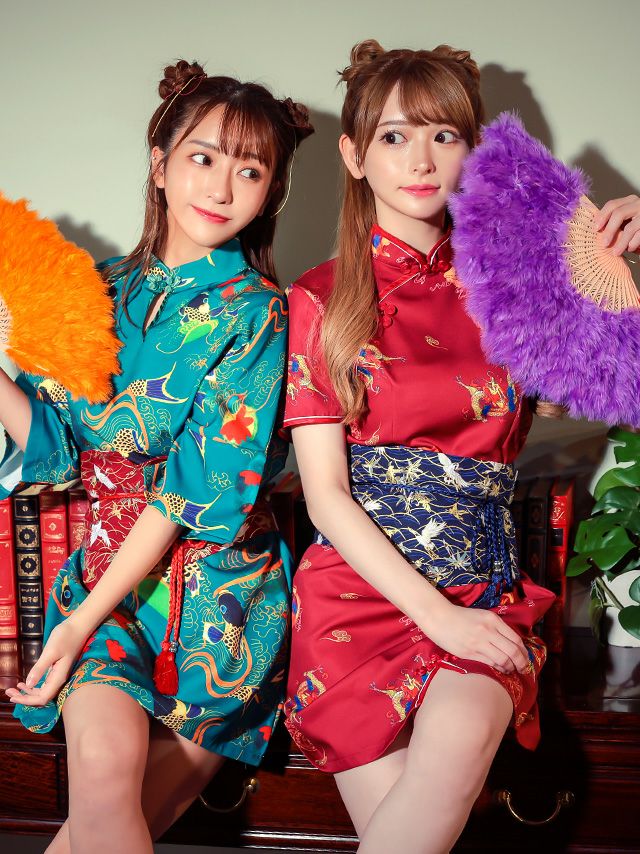 和風ハーフフリーブミニ丈ペアチャイナドレス