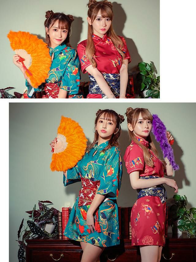 コスプレ チャイナ服 可愛い 衣装 仮装 お化けの日 体型カバー myMinette マイミネット ドロップカットアウトカラーミニセクシーチャイナドレス