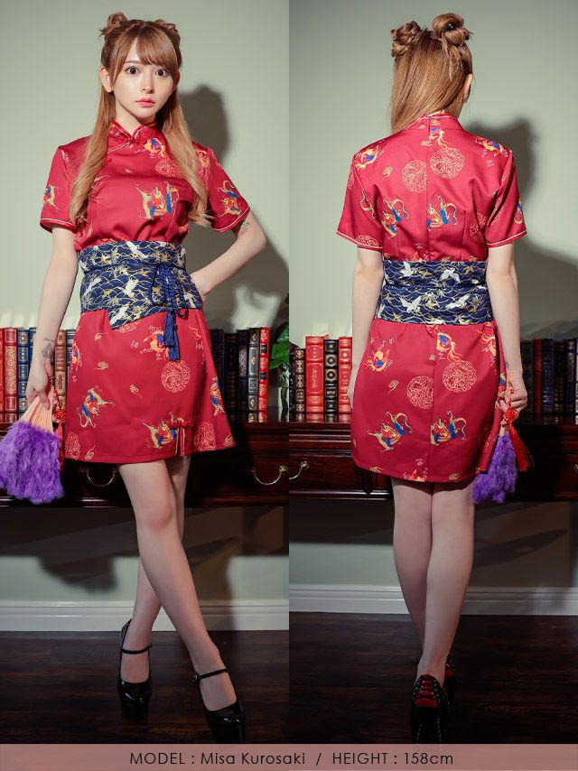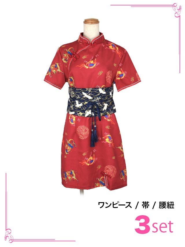 コスプレ ドロップカットアウトカラーミニセクシーチャイナドレス [3点セット] (ワンピース/帯/腰紐)