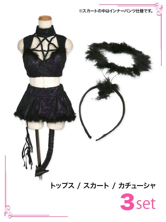 コスプレ 3点set レザー調スターラインマイクロミニスカセクシーデビル [トップス+スカート+カチューシャ](S)(ゆんころ,久保七瀬着用)