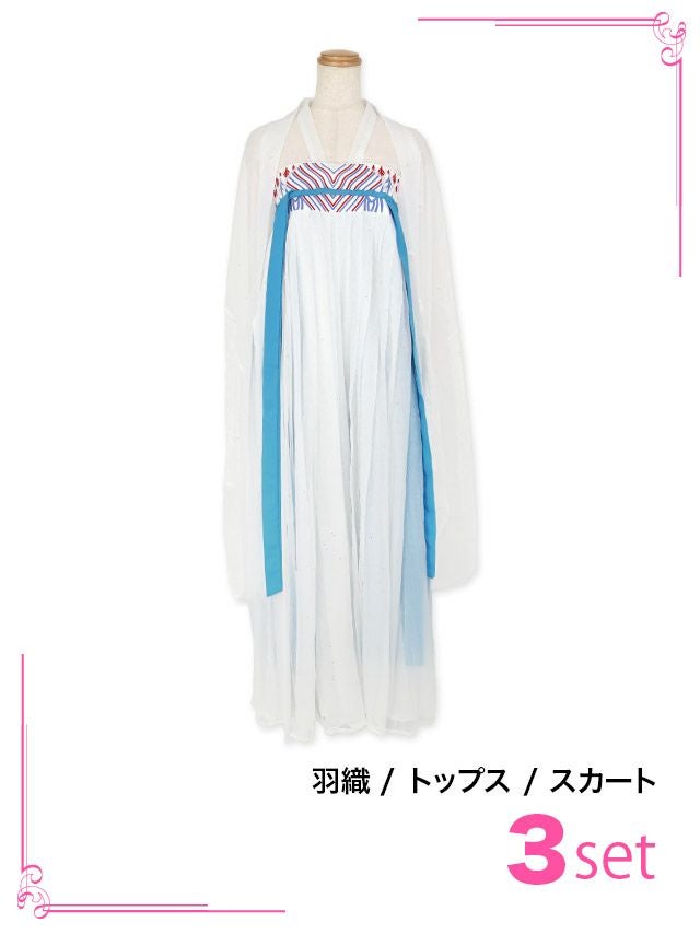 コスプレ ラメ入り漢服プリンセスガーリーチャイナドレス ハロウィンコスプレ3点セット [羽織り+トップス+スカート]