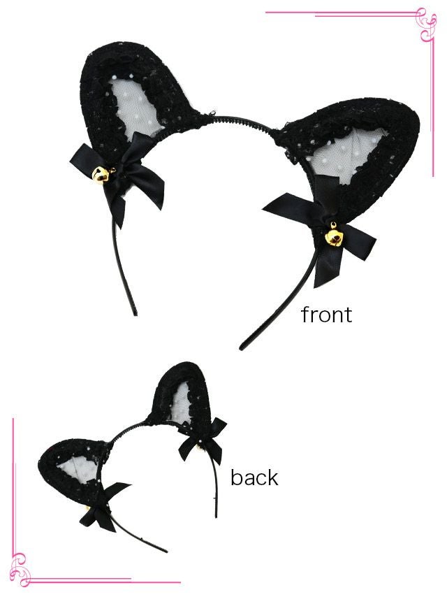 5. コスプレ 小物 鈴付きリボンドットシアーレース猫耳カチューシャ