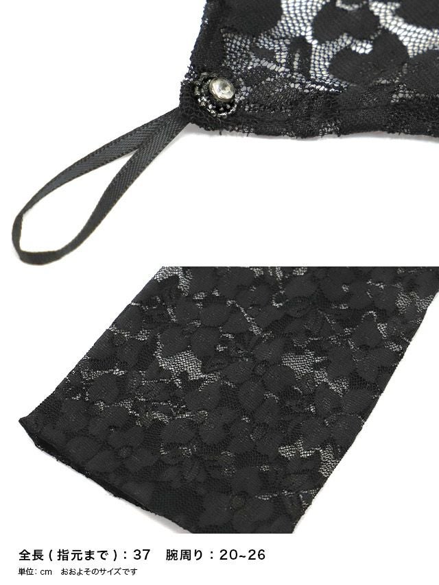 5. コスプレ 小物 ロングフラワーブラックレース中指フックグローブ