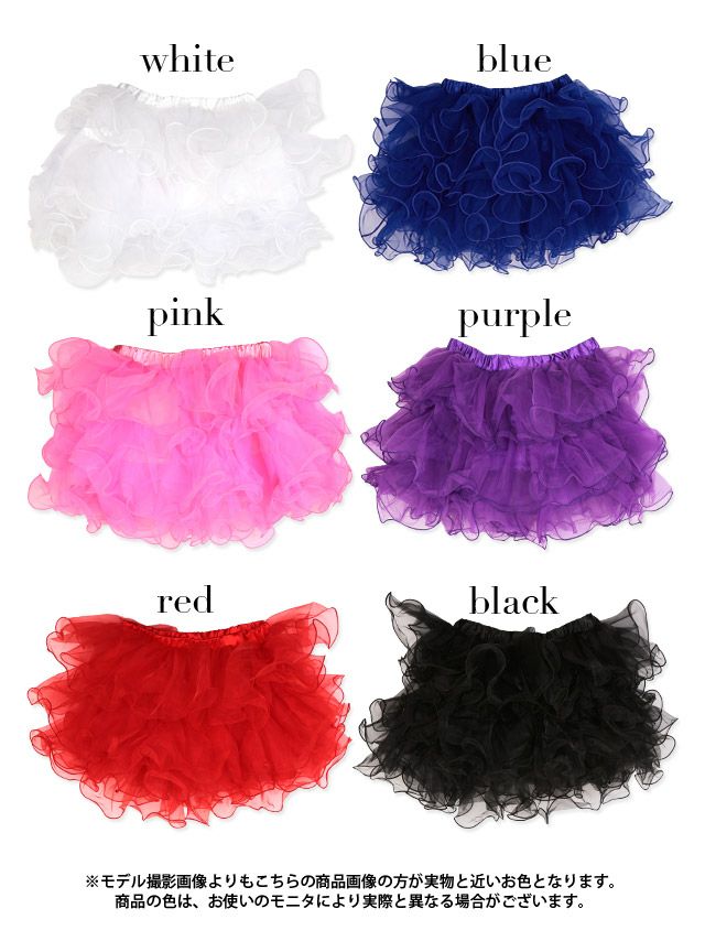 3. コスプレ 小物 3段フリルボリュームパニエ (ホワイト/ピンク/ブルー/パープル/レッド/ブラック)
