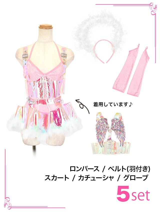 5. [セール]コスプレ ふわふわフェザー付きオーロラセクシー天使[5点セット] (ロンパース/ベルト/スカート/カチューシャ/グローブ)
