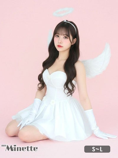 4. [セール]コスプレ ウイング付きサテンベアドレスガーリーエンジェル [5点セット] (ワンピース/羽/ガーターリング/カチューシャ/グローブ)(S~L)