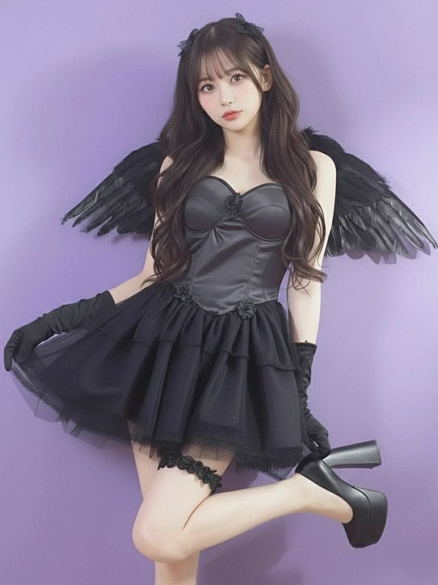 コスプレ ウィング付きフレアスカートペアベアトップガーリー悪魔&天使の商品画像1枚目