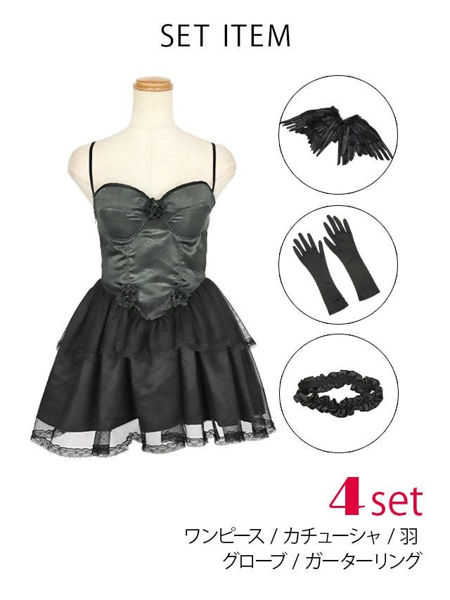 4. [セール]コスプレ ウィング付きフレアスカートペアベアトップガーリー悪魔&天使(S~L)
