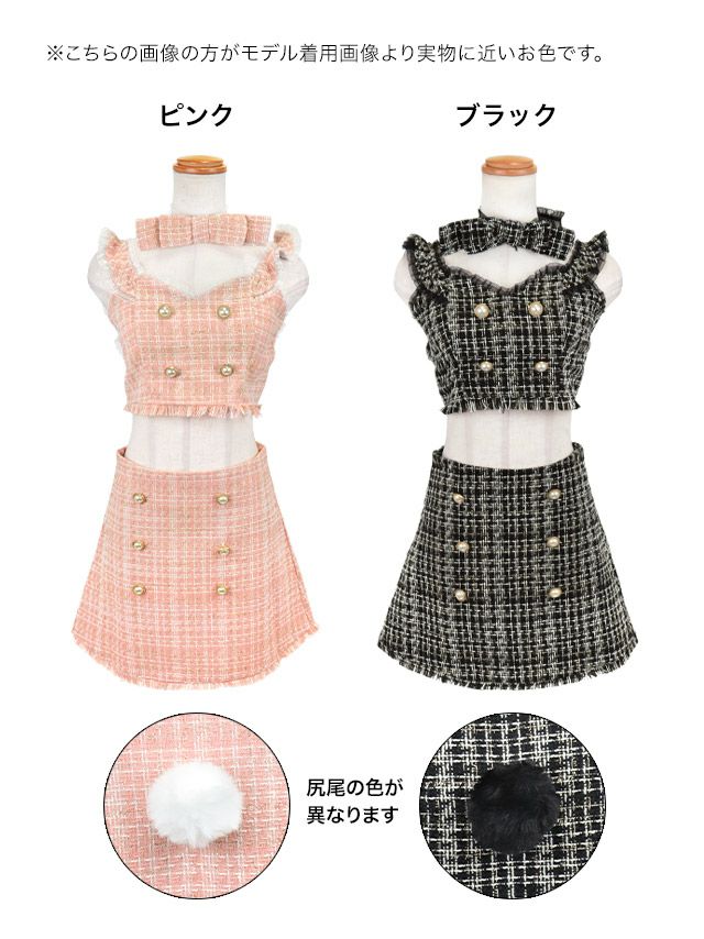 コスプレ へそ出しツイードチュールフリルパールボタン台形スカートガーリーペアバニーアニマルのカラー