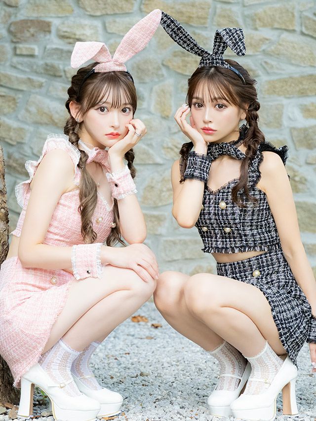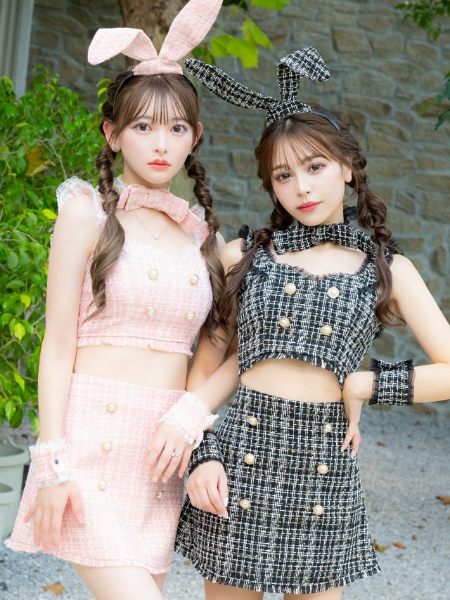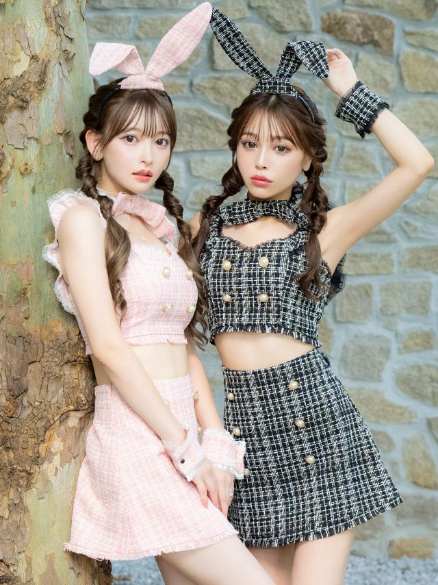 コスプレ へそ出しツイードチュールフリルパールボタン台形スカートガーリーペアバニーアニマルのカラー