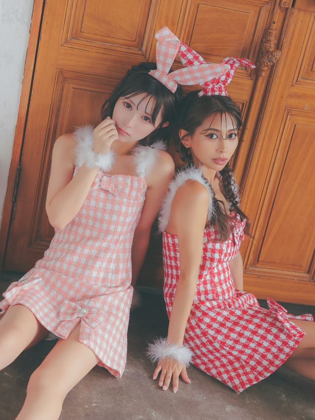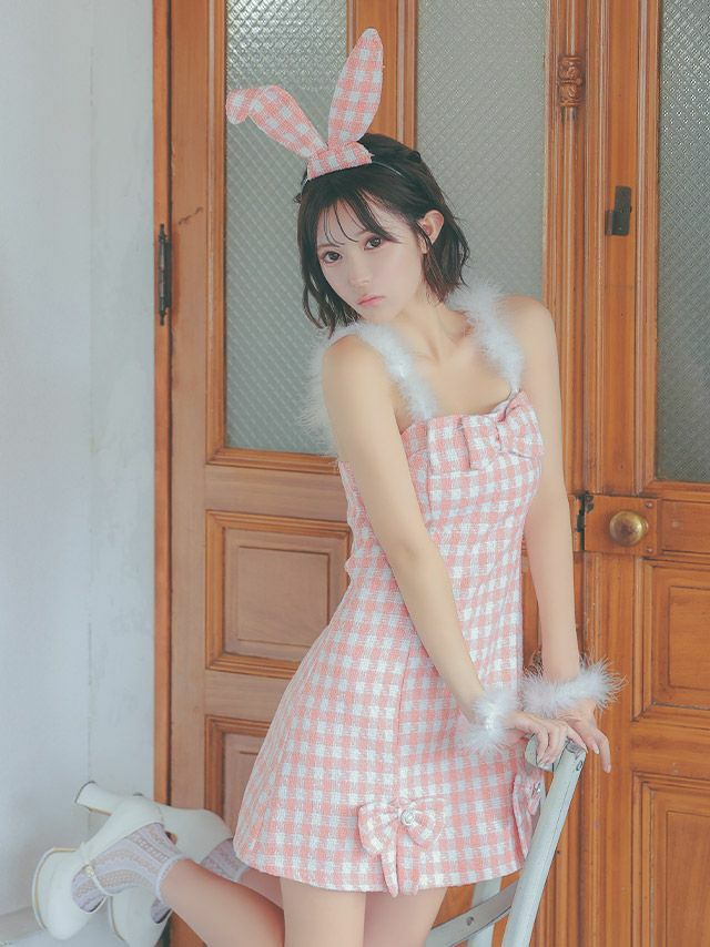 コスプレ ふわふわフェザーショルダーツイードチェックパールリボンガーリーバニーアニマルの7枚目