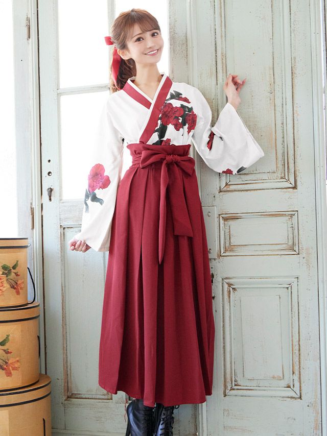 [セール]コスプレ 和装体型カバーロング丈ペアガーリーレトロ袴 [3点セット] (トップス/袴/リボン2本)