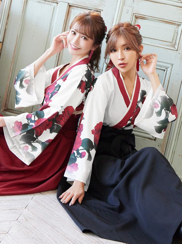 コスプレ 袴 セット 和装 コスチューム 衣装 仮装 イベント パーティー myMinette マイミネット フラワー デザイン 和装 体型カバー ロング丈 レトロ 袴