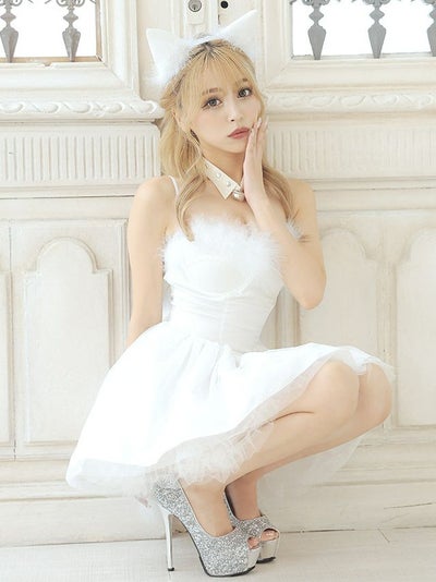 鈴チョーカー付きAラインフェザーフレアドレス猫アニマル