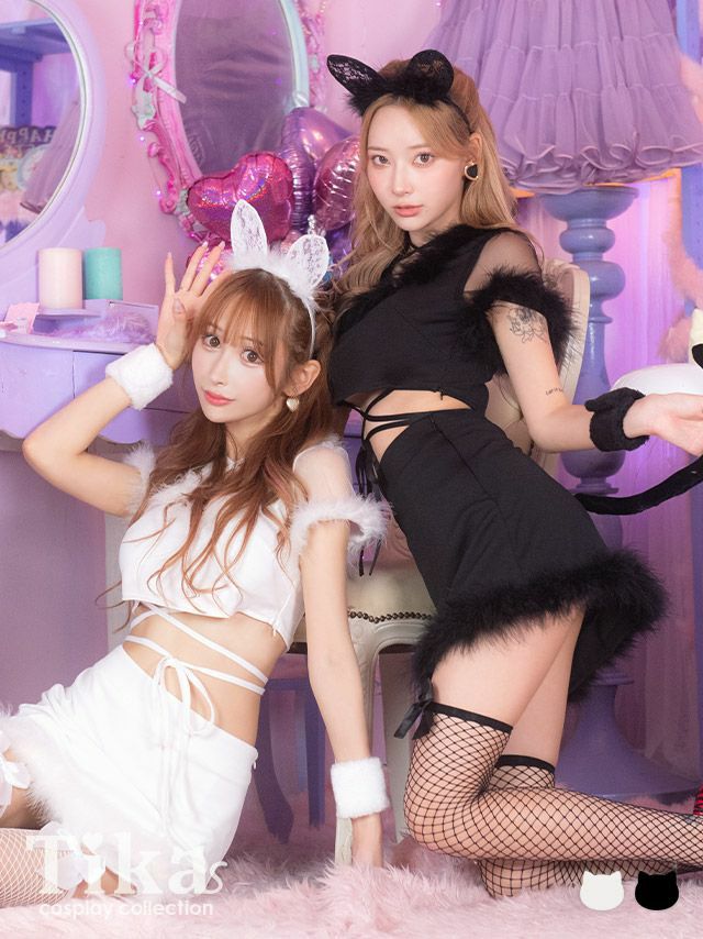 女の子らしいふわふわフェザーを飾った可愛い&sexyな白猫ちゃんコスプレ