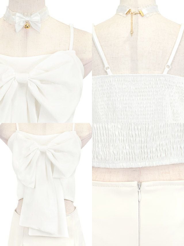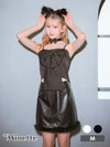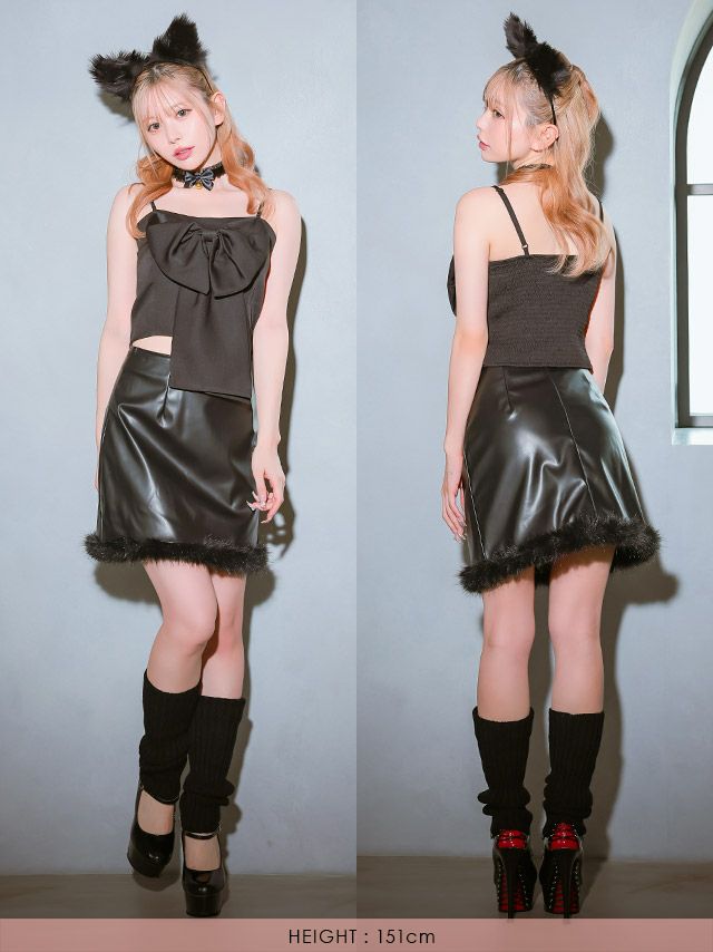 コスプレ ビッグリボンキャミソールへそ出しレザーファータイトスカートセットアップ猫アニマルのフロントバック
