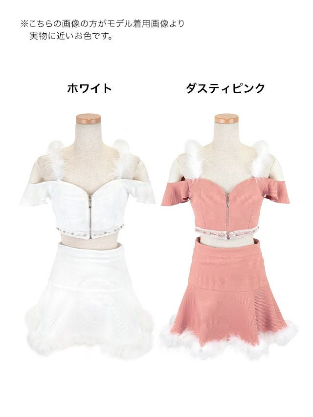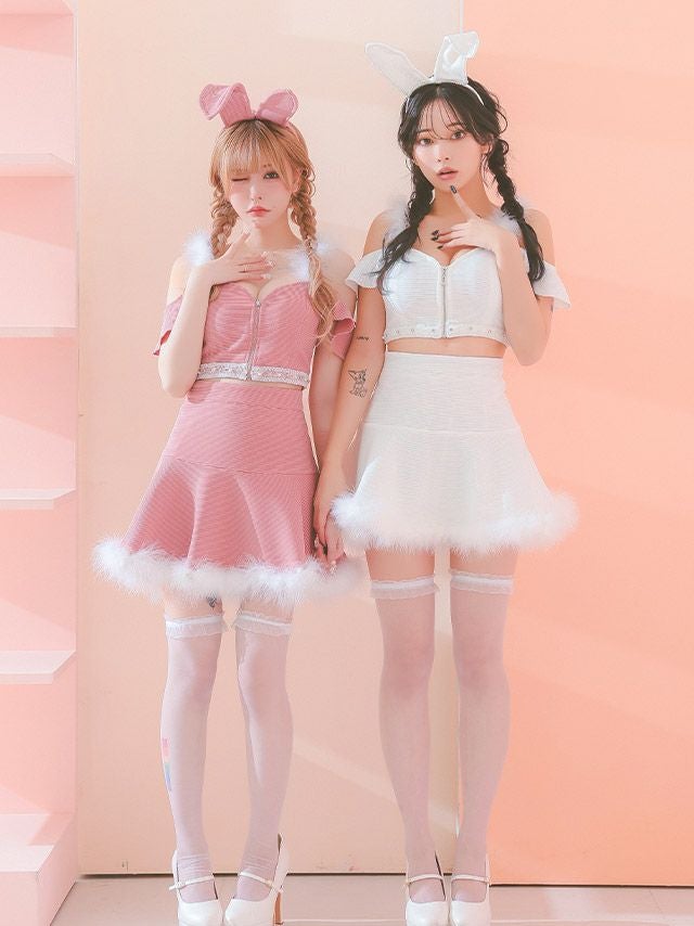 コスプレ へそ出しふわふわフェザー付きフレアスカートガーリーバニーアニマルのカラー