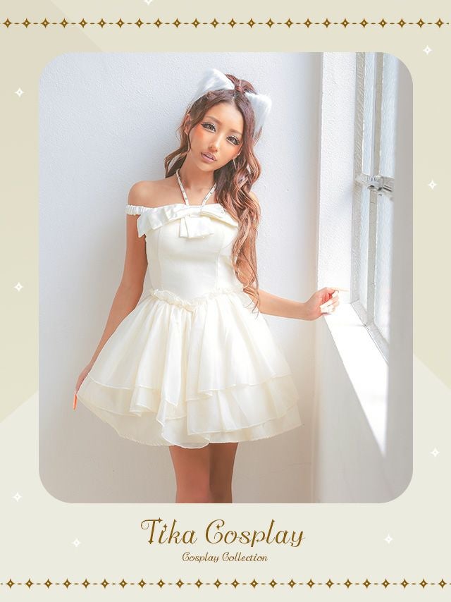 大きなリボンでデコルテとお顔が華やかに見え