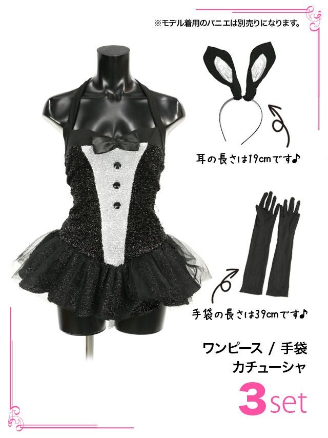 4. [セール]コスプレ Aラインチュールフレアグリッターラメタイトセクシーペアプチプラバニーガール [3点セット] (ワンピース/手袋/カチューシャ)(M~XL)