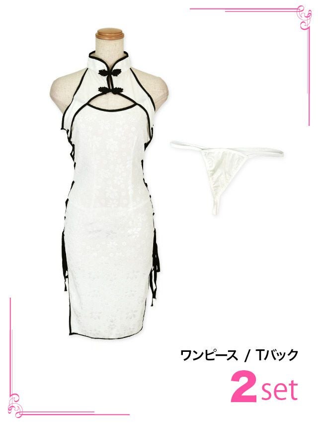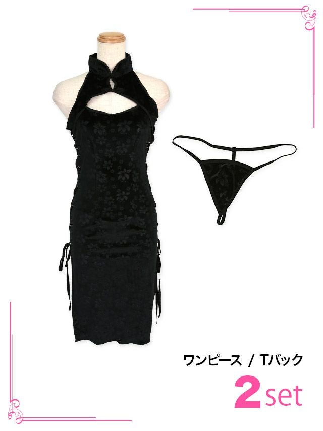 [セール]コスプレ サイドレースアップバストカットセクシータイトチャイナ服 [2点セット] (ワンピース/Tバック)
