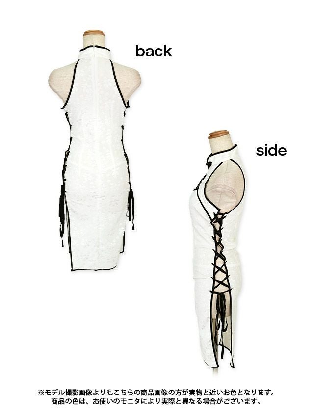 コスプレ サイドレースアップバストカットセクシータイトチャイナ服のフロントバック