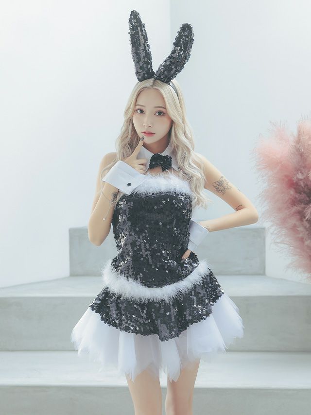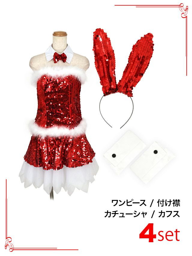 4. [セール]コスプレ キラキラスパンコールゴージャスガーリーベアトップバニー [4点セット] (ワンピース/付け襟/カチューシャ/カフス)