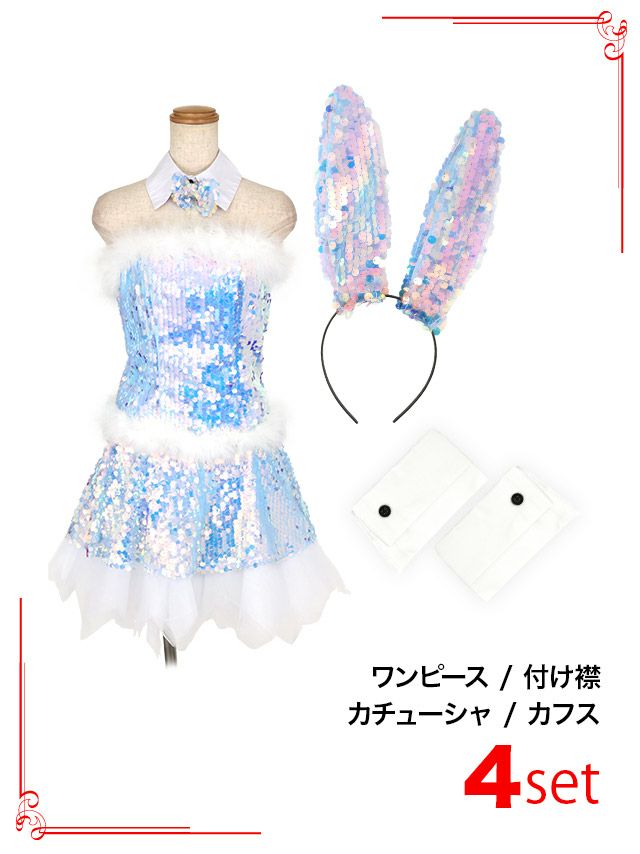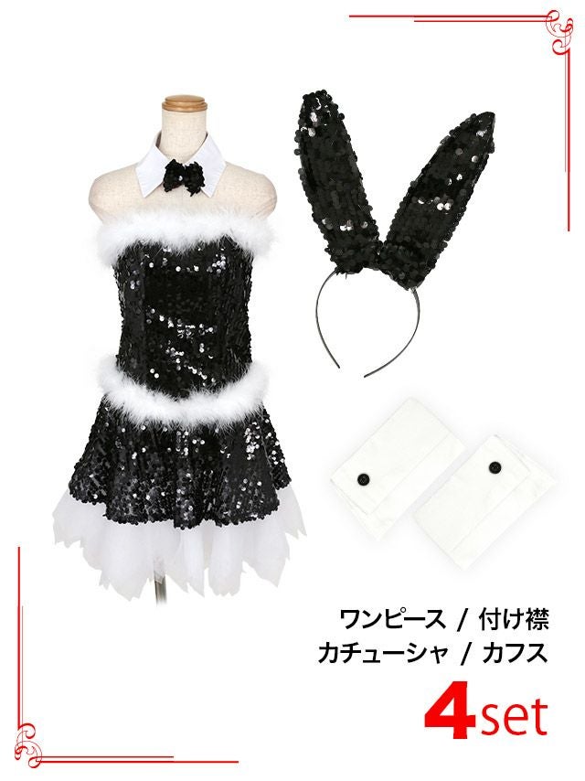 4. [セール] コスプレ ベアトップデザインキラキラスパンコールガーリーゴージャスウエイトレスバニー [4点セット] (ワンピース/付け襟/カチューシャ/カフス)