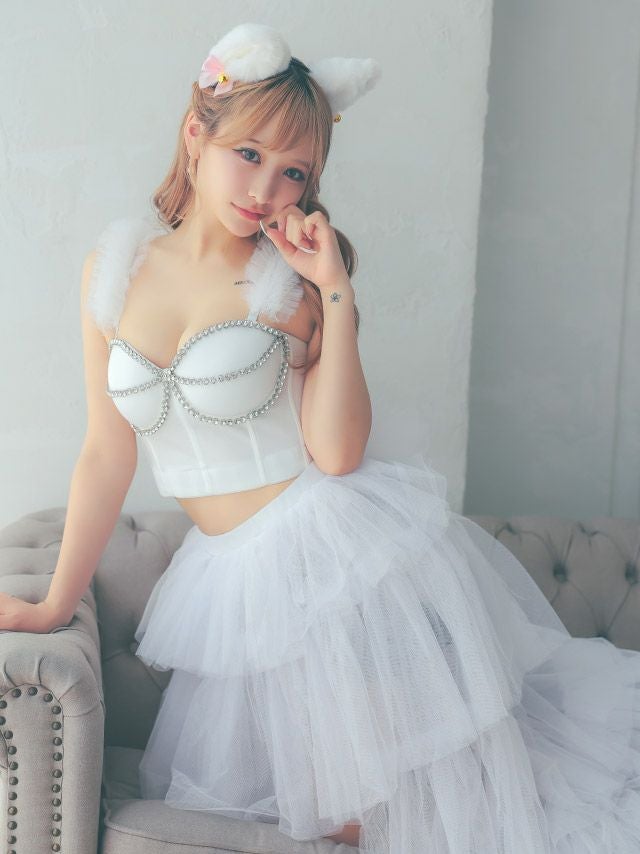 トップスはビスチェになっており、大胆に谷間を強調☆
